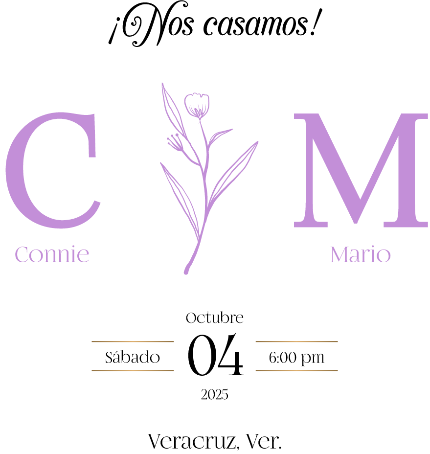 Con amor en el corazón y alegría en el alma, hemos decidido amarnos, cuidarnos y respetarnos para siempre. Nos llena de felicidad compartir contigo este momento tan especial.